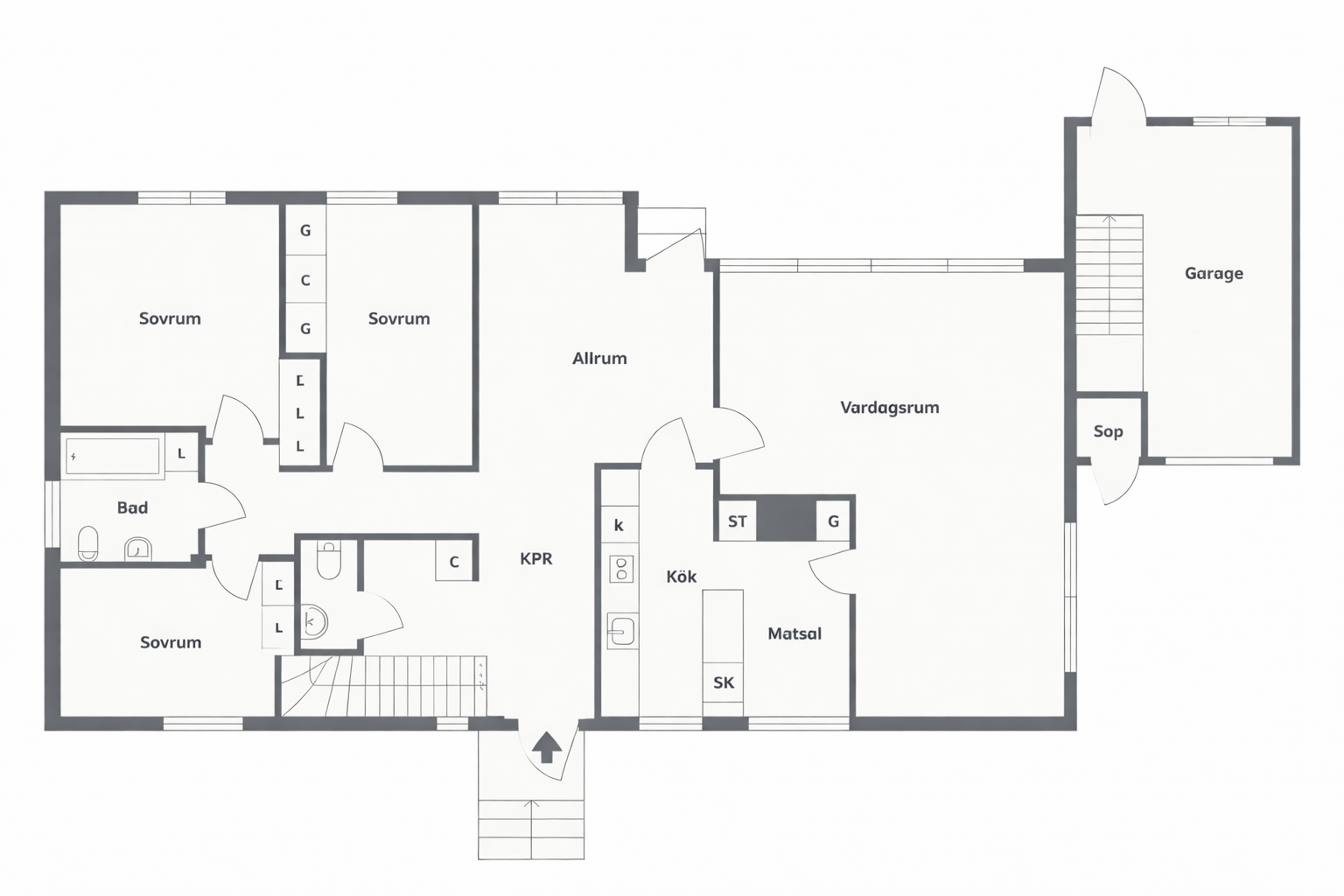 Huset erbjuder en genomtänkt planlösning med ett rymligt vardagsrum och flexibla sovrum som enkelt kan anpassas efter familjens behov. Här finns dessutom en inbjudande bastu för avkopplande stunder, en praktisk tvättstuga samt ett bekvämt garage ,allt för att göra vardagen både smidig och behaglig.