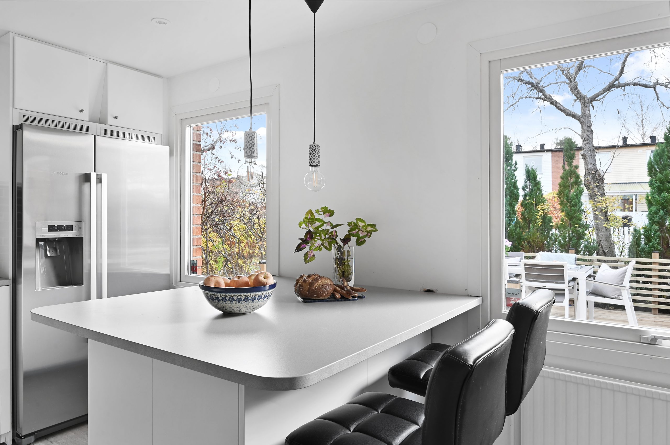 Från den soliga balkongen och den inbjudande uteplatsen kan du njuta av varma dagar och stilla kvällar i en grön, lättskött trädgård med god möjlighet till avskildhet.