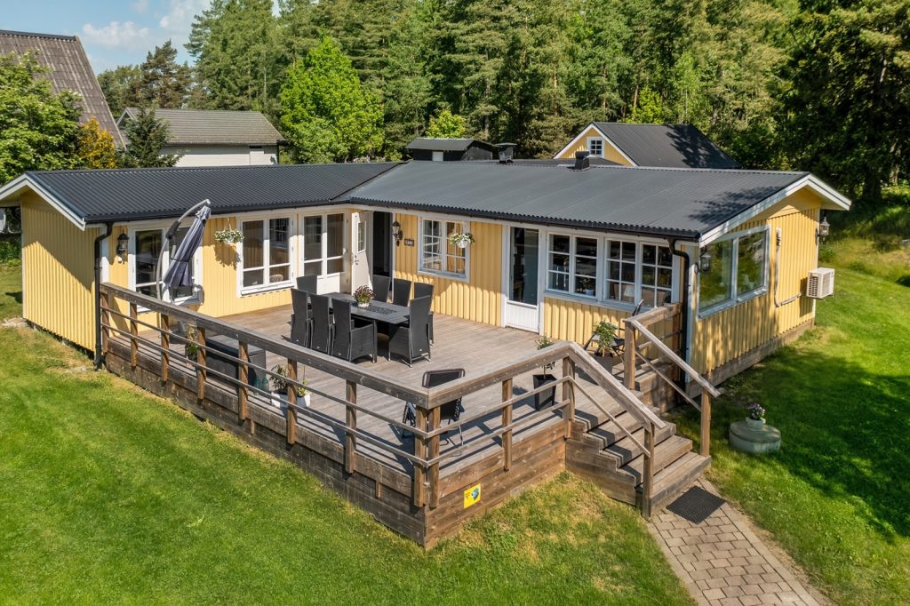 Den generösa och gröna tomten erbjuder utrymme för trädgårdsaktiviteter, lek och uteplatser med gott om plats för både avkoppling och gemenskap utomhus.