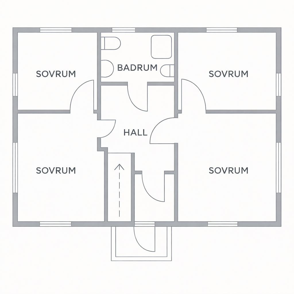Huset har en välplanerad disposition med stora sällskapsytor, flera sovrum och utrymmen som skapar balans mellan gemenskap och avskildhet.