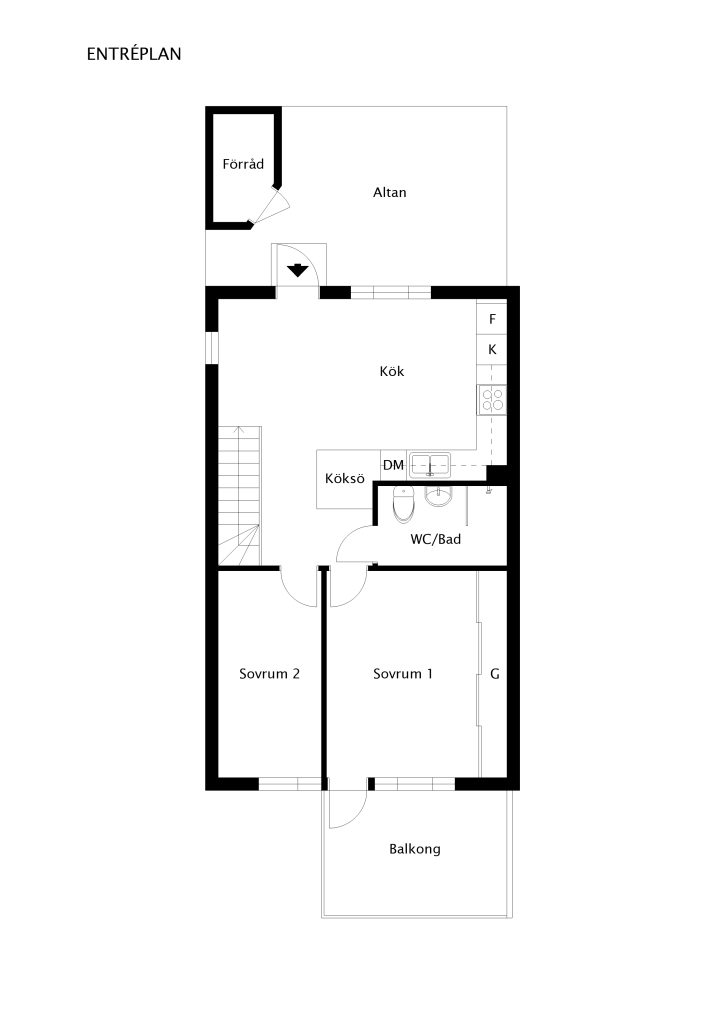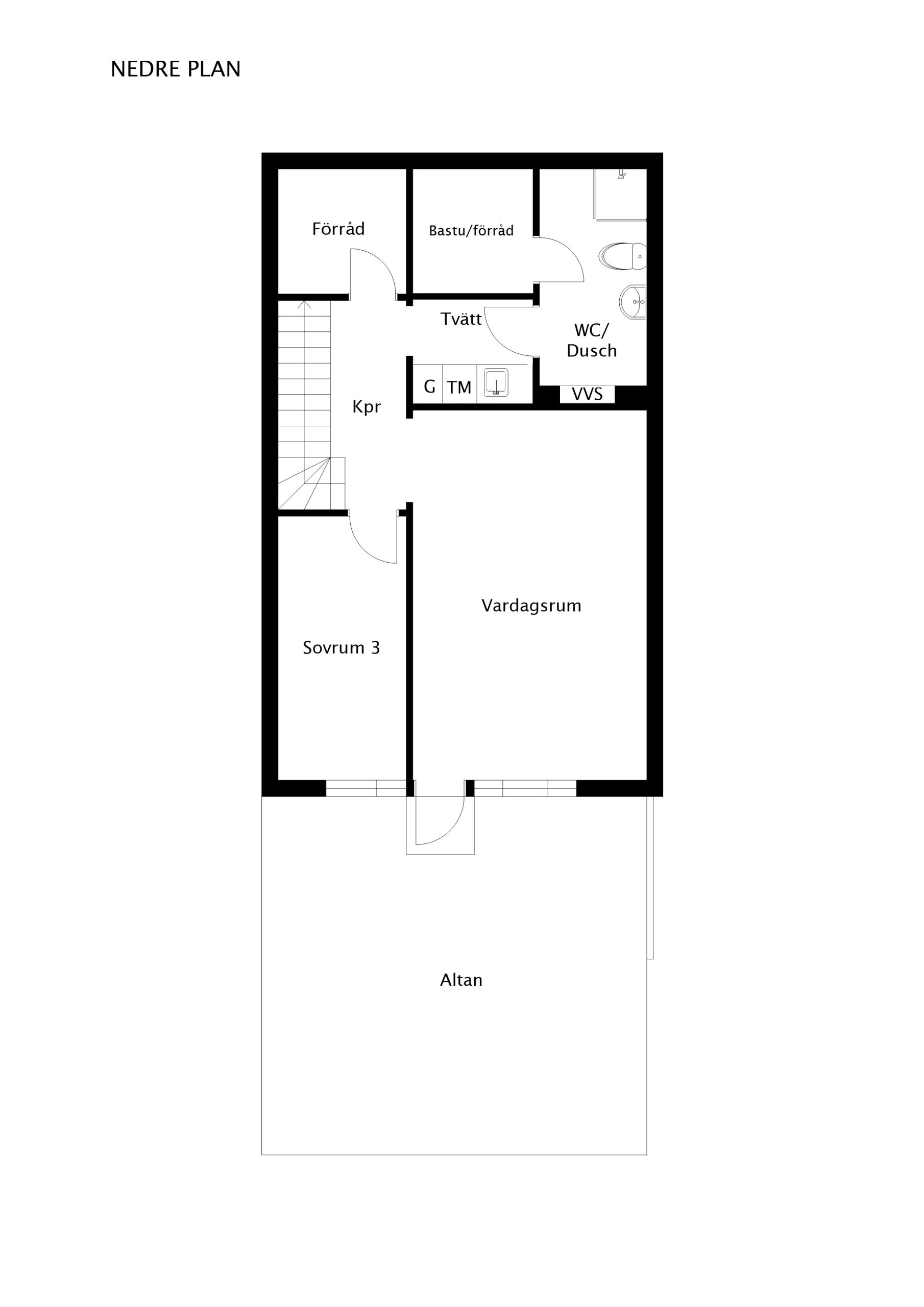 De ljusa och öppna ytorna ger en luftig känsla, medan biytan erbjuder praktiskt extra utrymme för förvaring, hobby eller arbete.