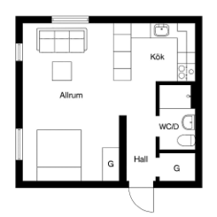 Den smarta planlösningen och moderna standarden gör att varje kvadratmeter används effektivt, vilket skapar ett praktiskt och trivsamt boende med allt du behöver på liten yta.
